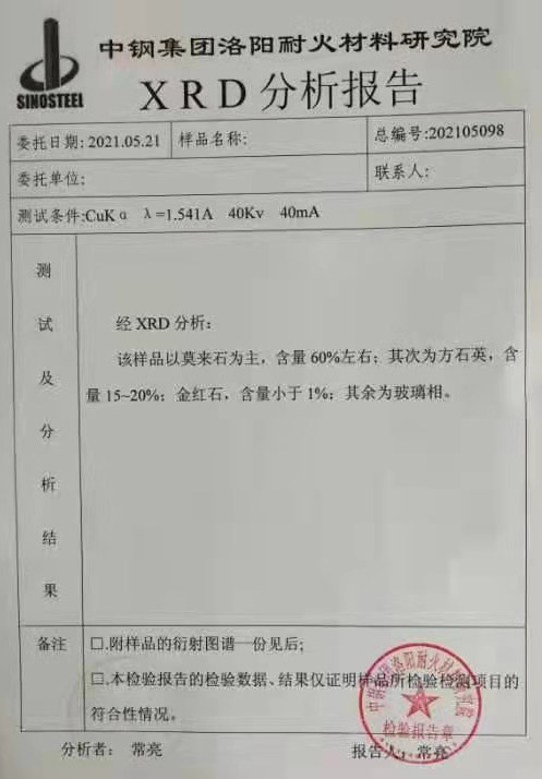 氧化鋁含量46.87,氧化鐵含量0.37,二氧化鈦含量0.84